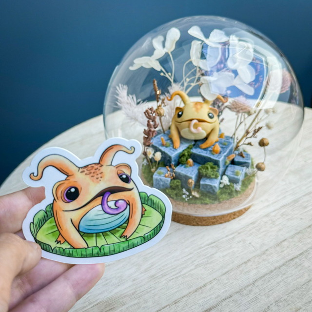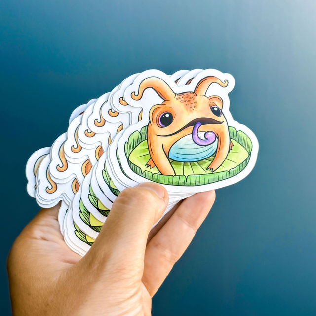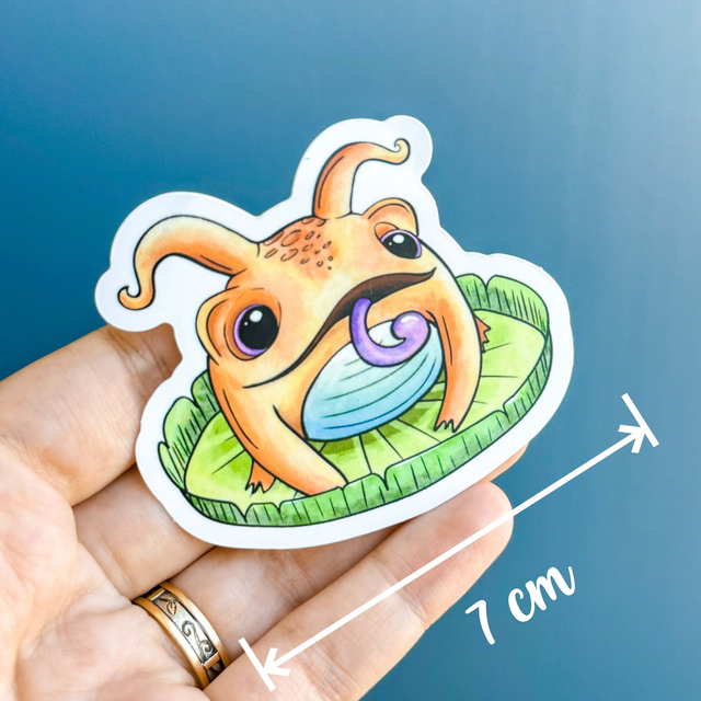 Description : Un sticker plastifié mat représentant un petit crapaud / grenouille magique dit "crapouilleau" sur son nénuphar, à coller partout ! :)
